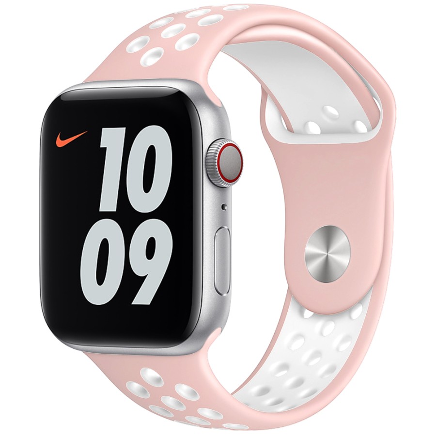 С помощью ремешка Nike Apple Watch Вы сможете создать индивидуальный стиль ваших часов и сделать их не похожими на другие. Аксессуар отлично фиксируется на руке, а отверстия, расположенные по всей его поверхности, обеспечивают доступ воздуха к коже. Ремешки этой модели имеют контрастную расцветку, что будет отлично говорить об активном образе жизни владельца. Для надежной фиксации используется застежка типа pin-and-tuck. Материал, из которого изготовлен данный ремешок, отличается своей повышенной прочностью, надежностью и мягкостью.