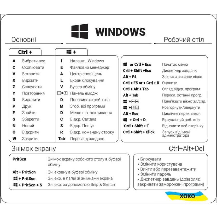 Наклейка с горячими клавишами Windows (Прозрачный/Белый) XK-MCR-WIW