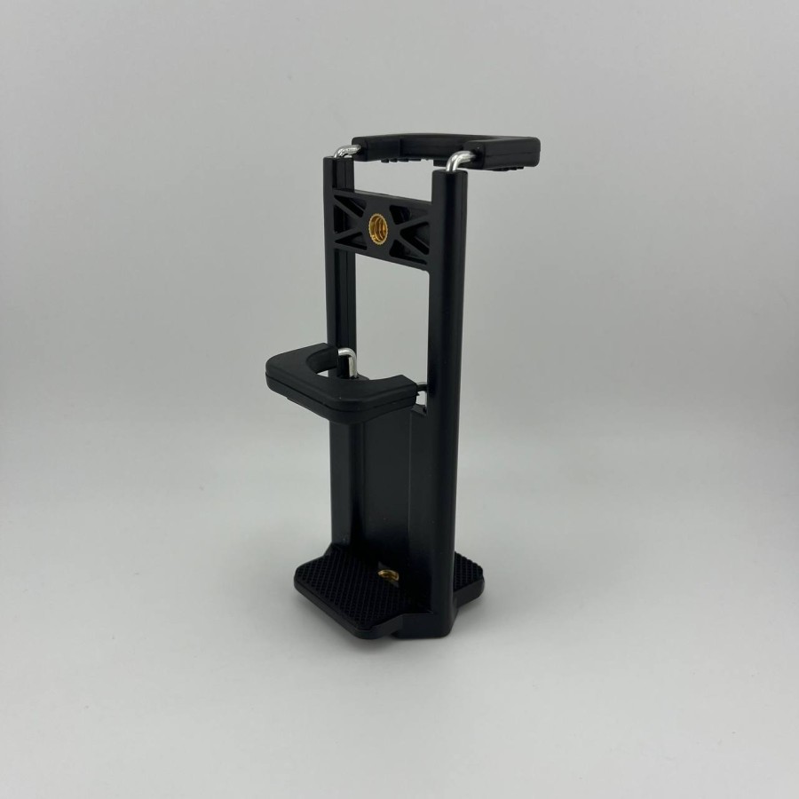Универсальный держатель для телефона и планшета на штатив представляет собой практичное решение для стабилизации устройств во время съемки или просмотра контента. Он оснащен регулируемыми креплениями, что позволяет использовать его с различными моделями телефонов и планшетов. Держатель легко монтируется на штатив, обеспечивая надежное закрепление устройства в нужном положении для удобства использования.