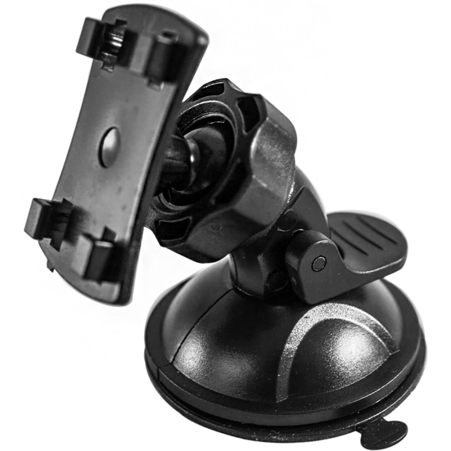 Кріплення на присосці із міцного пластику та термостійкої гуми. Тримач дозволяє встановити відеореєстратор на лобове скло автомобіля з максимальною фіксацією в заданому положенні та підійде для різних типів скла. Кріплення можна встановити на будь-якій гладкій поверхні. Фіксація дуже сильна, тримає за будь-яких умов. У мороз та спеку. Складається він із двох частин: підставки-присоски та шарнірної головки. Шарнірна головка дозволяє регулювати кут нахилу камери. Швидкий монтаж та демонтаж кріплення не ушкоджує поверхню.