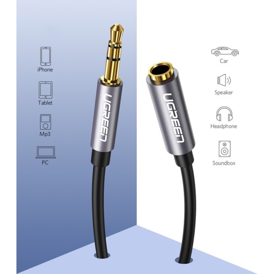 Кабель-подовжувач AUX UGREEN AV118 (3.5мм - 3.5мм) (2м) (Сірий) (10594)