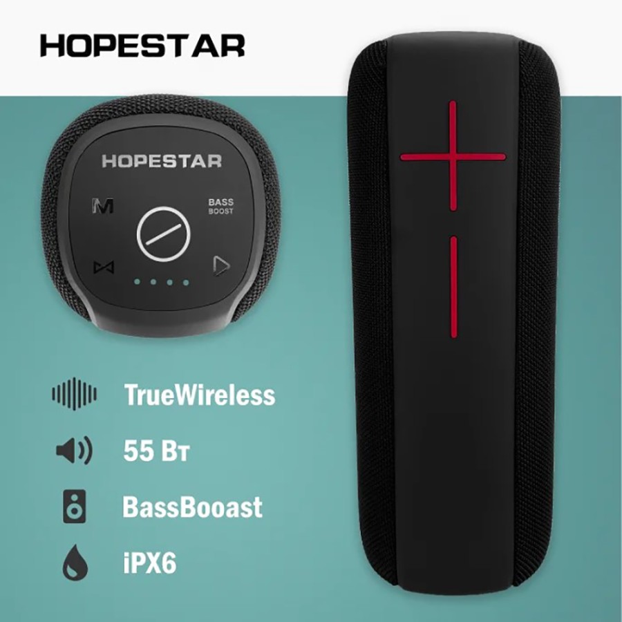 Hopestar P15 Max – качественная портативная колонка от набирающего популярность бренда, обладающая современным функционалом по выгодной цене. Дизайн колонки приятный и лаконичный, который легко впишется в любой интерьер, её форм-фактор и размеры позволят без дискомфорта переносить с собой. За звук отвечают два мощных динамика с общей мощностью в 10 ватт и частотным диапазоном в 20-20000 Гц, обеспечивая громкое, но при этом четкое звучание без помех. Материалы корпуса довольно высококачественные, основу составляет высокопрочный пластик, который выдерживает удары и падения без повреждений, динамики же покрыты специальной тканью, которая не глушит звук. Выполнен корпус по стандарту влагозащиты IPX6, благодаря чему акустика надежно защищена от случайных попаданий воды. Подключается колонка по Bluetooth современного стандарта 5.0, который обеспечивает передачу звука без искажений и задержек, а также стабильное соединение на расстоянии до 10 метров. Также данная акустика способна воспроизводить аудио при помощи внешних накопителей Flash USB и microSD, а также подключение через 3,5мм AUX разъём. Аккумулятора объёмом в 6000mAh хватает до 4 часов активной работы без подзарядки, заряжается же посредством разъёма стандарта microUSB.