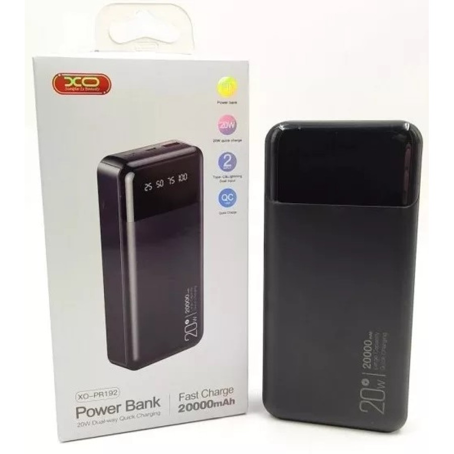 Павербанк XO PR192 20000мАг PD 20Вт + QC 18Вт (Чорний)